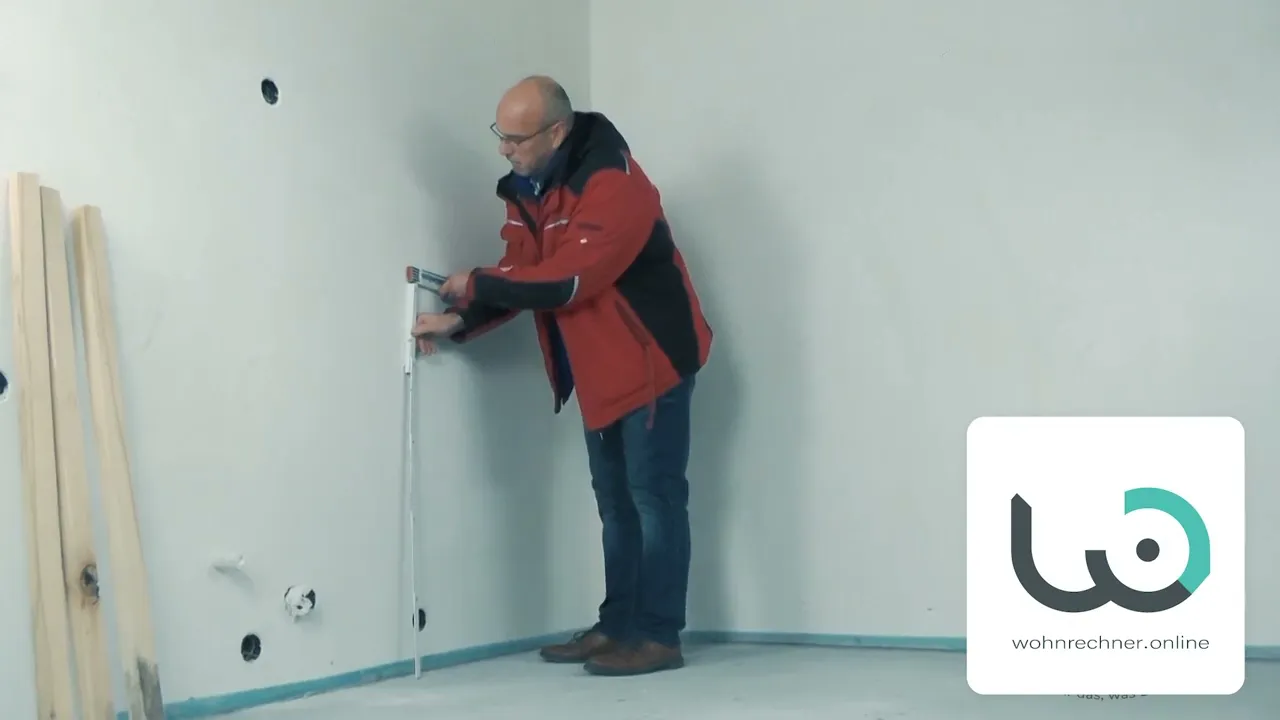 Wichtig: Achten Sie darauf, dass Ihr Zollstock gerade und vollständig ausgeklappt. ist. Das Maßband sollte immer straff bei der Vermessung verwendet werden und nicht durchhängen. Der Laser des Lasermessgerätes muss parallel mit den Wänden verlaufen.