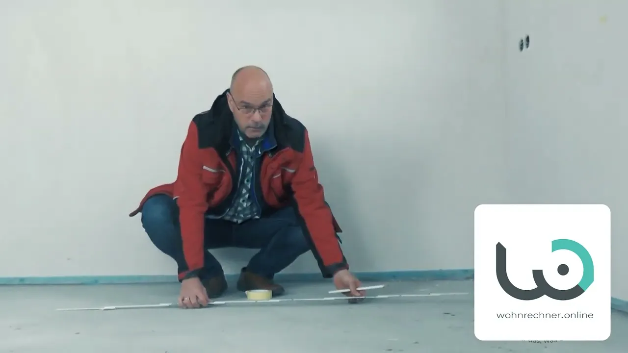 Nachdem nun feststeht, welche Flächen zur Wohnfläche hinzugerechnet werden dürfen und welche nicht, können Sie mit der Vermessung Ihrer Raumteile beginnen. Wir empfehlen Ihnen, dass Sie im Voraus alle notwendigen Markierungen auf dem Boden und den Wänden mit Malerkreppband – wie in den vorherigen Videos erklärt – setzen.
